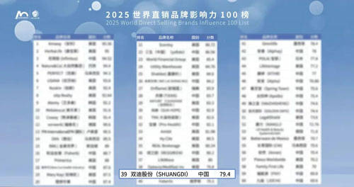 在本届新消费品牌节上,世界直销研究院联合帝瑞研究院、中国世界贸易组织研究会直销研究专业委员会联合发布了《世界直销品牌影响力100榜》。双迪位列第39 位。此榜单通过对过去一年全球直销企业的数据调研,并邀请国内外直销专家和资深从业者,从战略引领力、品牌经营力、组织管控力、科研创新力、全球拓展力等五个层面对全球直销企业展开综合评估。