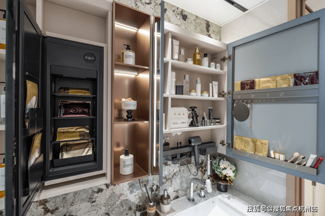 美妆灯与抽拉龙头的 “感官SPA” 系统,将洗漱升级为一场全方位的护理体验。建面约116m²样板房实拍 仅供参考